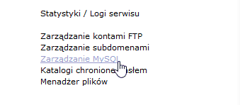 W celu założenia nowej bazy danych należy zalogować się do panelu administracyjnego i przejść do sekcji „Zarządzanie MySQL”