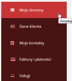 Po zalogowaniu do panelu klienta z bocznego menu należy wybrać opcję "Moje domeny"